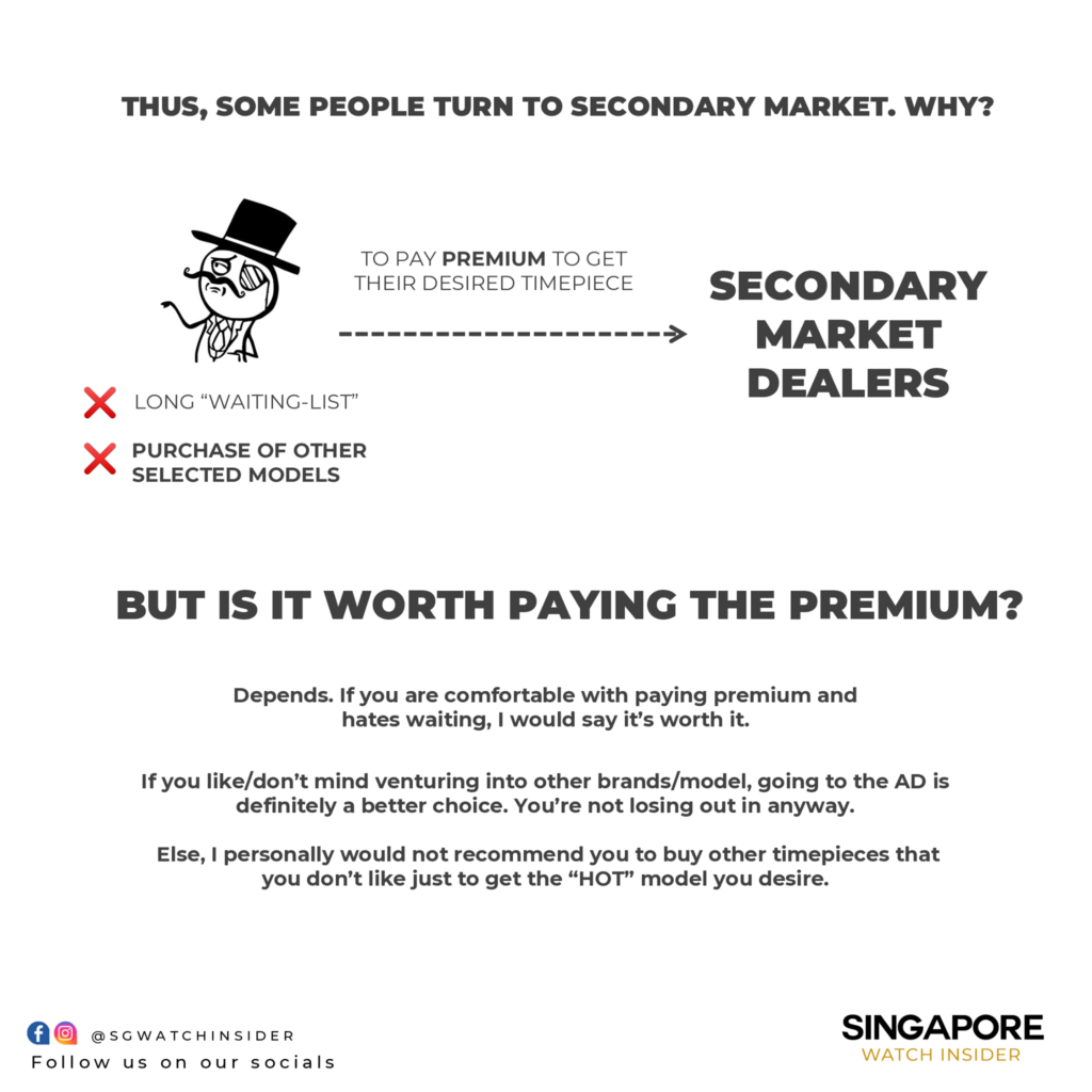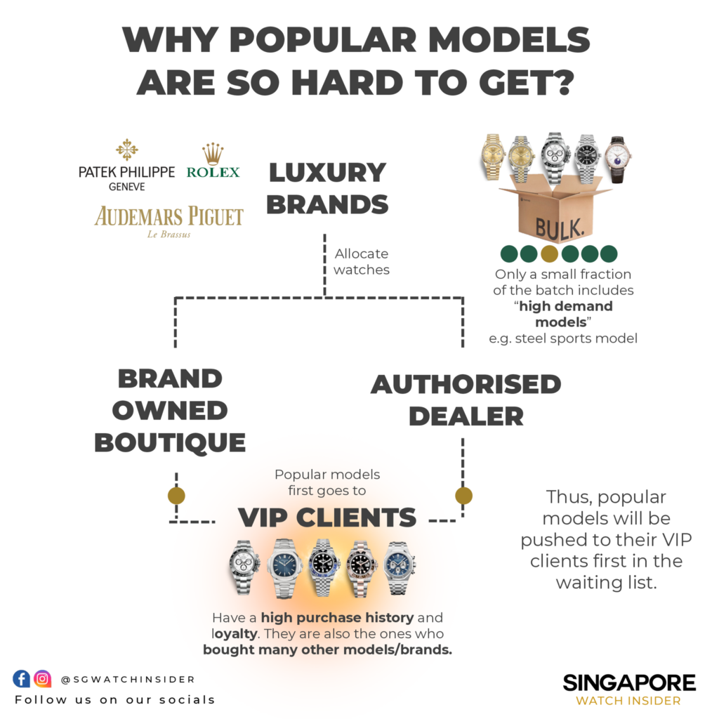 If you’re new to the horology scene, this is a breakdown of why it’s hard to get sports model just by walking into an AD. Hope this helps you get a rough idea.