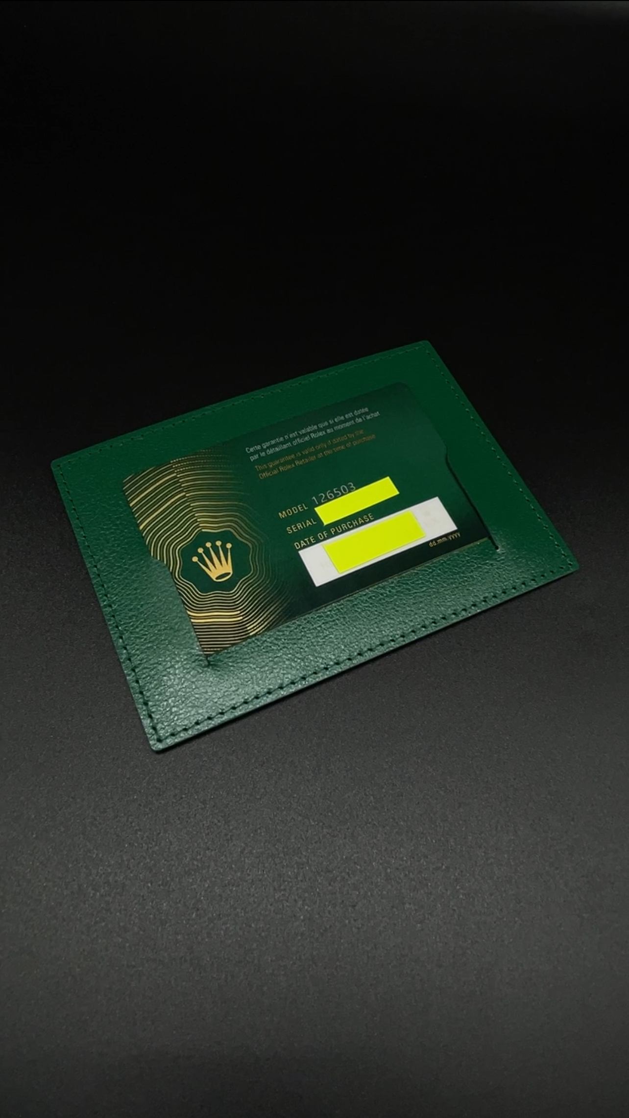 You’ll receive the new warranty card holder for your Rolex Daytona (Ref. 1265XX).